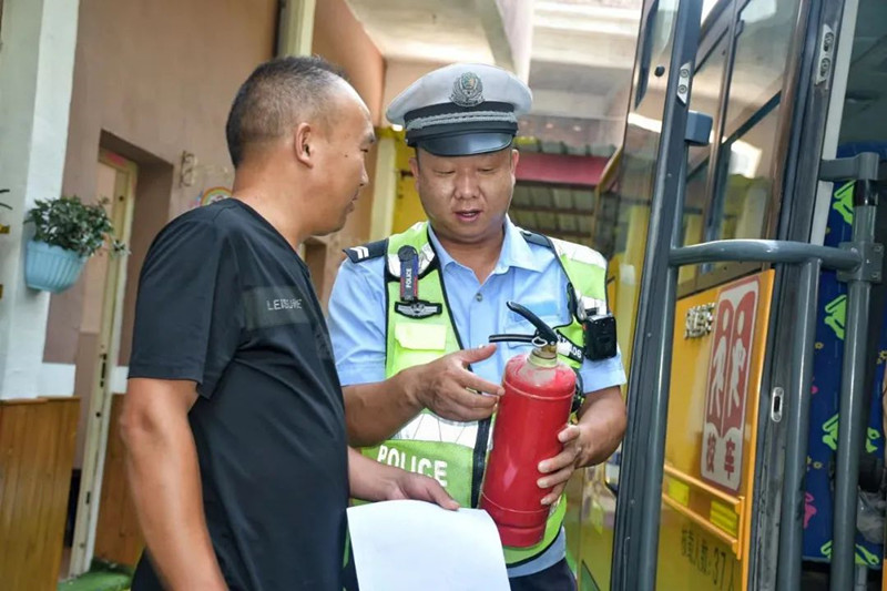 新学期开学前,组织民警对辖区中小学、幼儿园开展校园及周边安全大检查。通过现场查看、资料查阅等方式对学校的建筑安全、消防器材等进行全面细致检查,并对发现的问题责令立即整改,确保校园安全形势稳定。