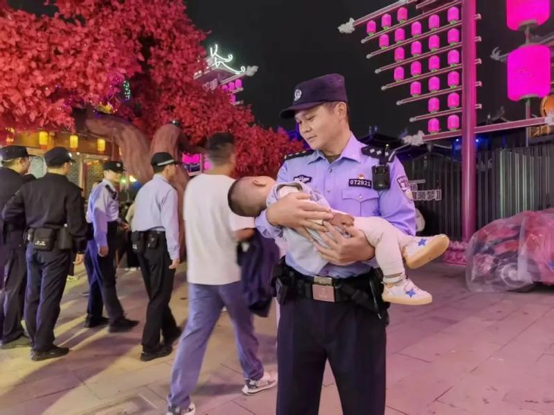 据悉,当日19时许,一位男同志抱着孩子正在濉溪古城游玩时,突感腹痛急需如厕,又不知道该将孩子安置在哪,恰巧看到附近正在执勤的警察便请求帮忙看护下孩子。将熟睡中的孩子交给正在执勤的同志,“孩子交给我们,你去吧!”民警随即从孩子父亲手中接过孩子。