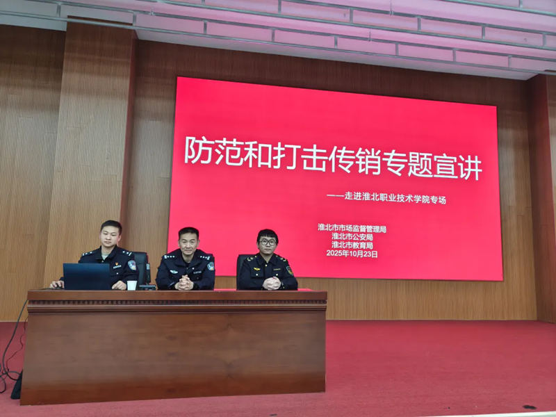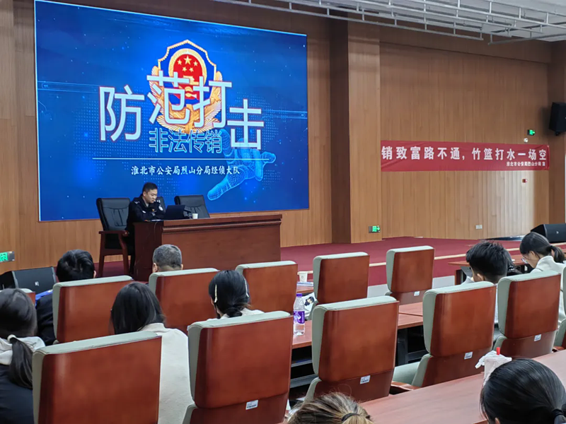 为增强在校大学生防范传销意识,严防传销势力向校园渗透,近日,淮北市公安局经侦支队联合市场监督管理局走进淮北职业技术学院举办“防范打击非法传销”校园宣讲活动。