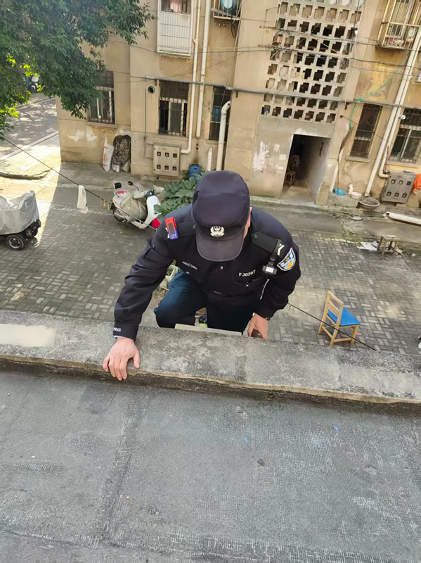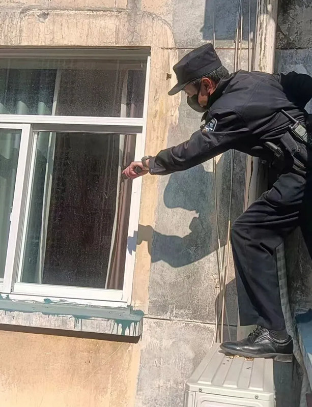 时间一分一秒过去,多一分耽搁,就可能多一分危险,为确认老人安危,民警决定从楼下攀爬至窗边查看,借助楼体外部装饰沿,艰难挪至老人家的窗口。经查看后发现,老人家中整洁,屋中并没有人,经过进一步核实,民警联系上了老人的儿子,得知老人已回老家,原来是“虚惊一场”。