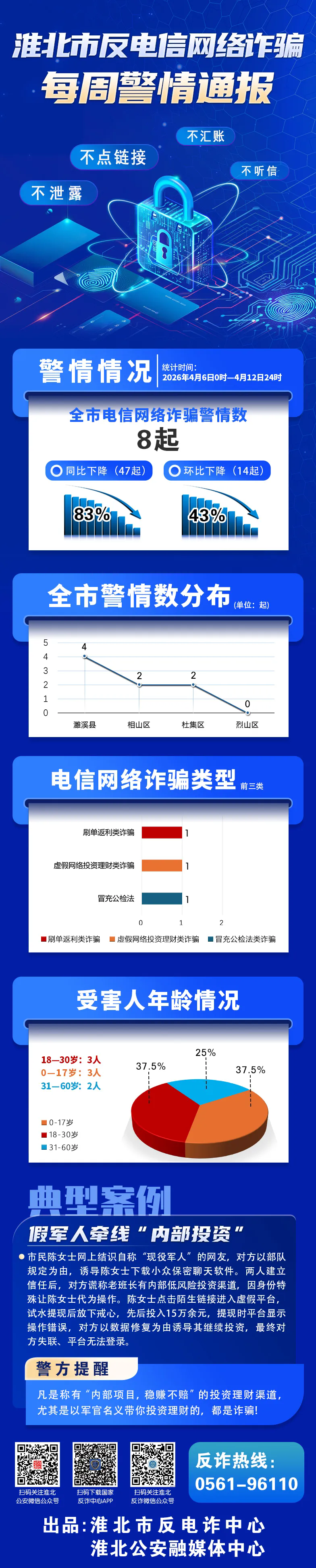 反诈周报丨淮北市反电信网络诈骗一周警情通报(2026年4月6日0时—4月12日24时)