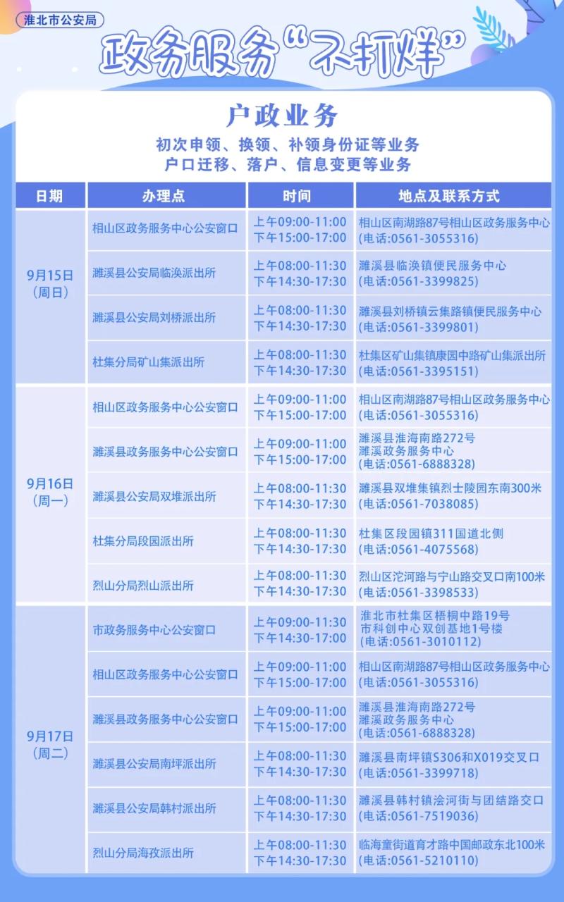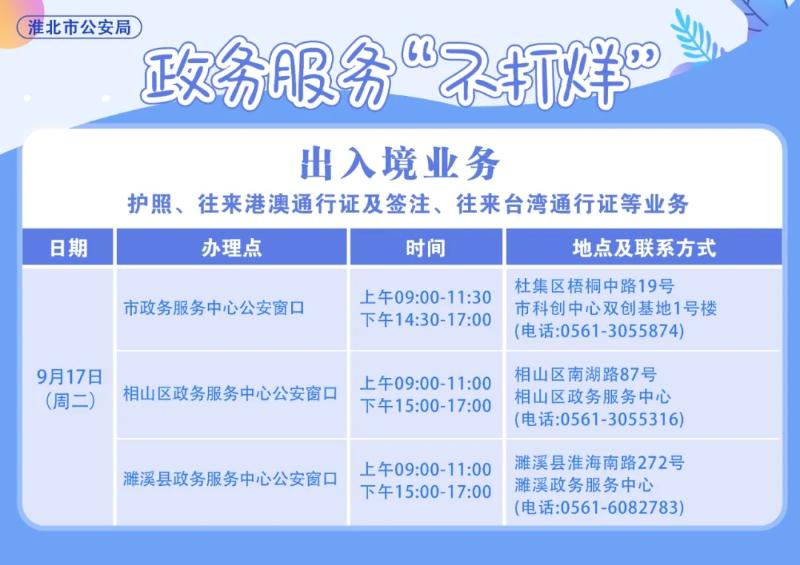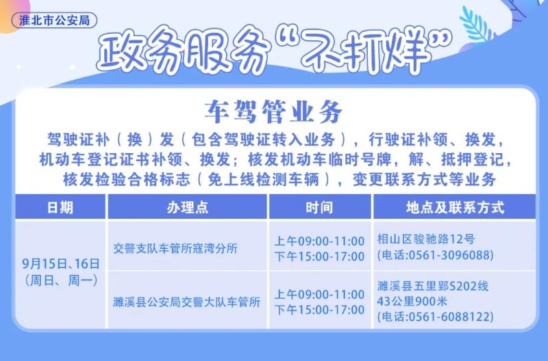 “中秋”假期快要到啦!公安服务窗口放假吗?淮北市公安局为方便市民朋友们和企业办事公安政务窗口提供假期“不打烊”暖心服务。具体安排如下:快来了解一下吧