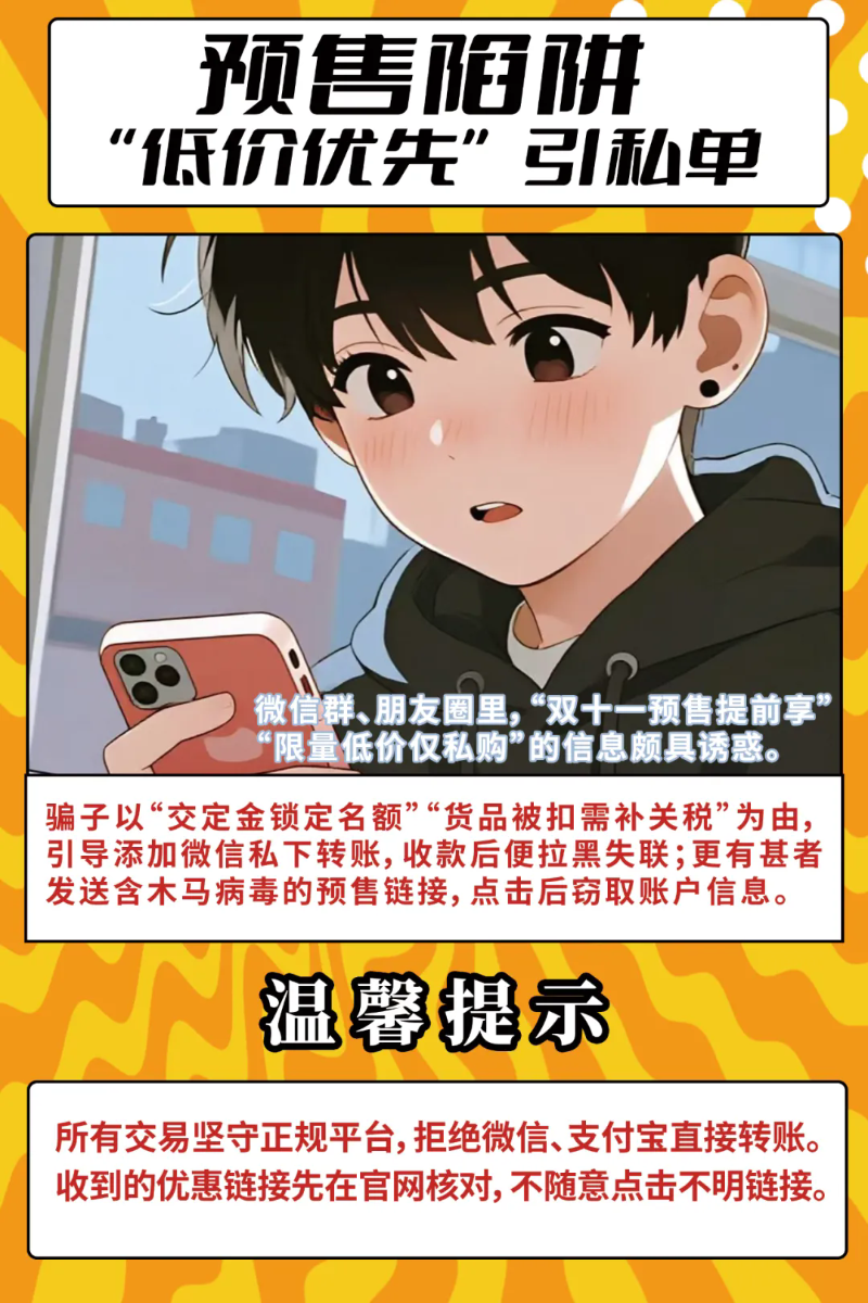 “双十一”预售开启骗子也开始 “冲业绩”,你忙着 “买买买”,诈骗分子早已备好 “剧本” 伺机而动……。