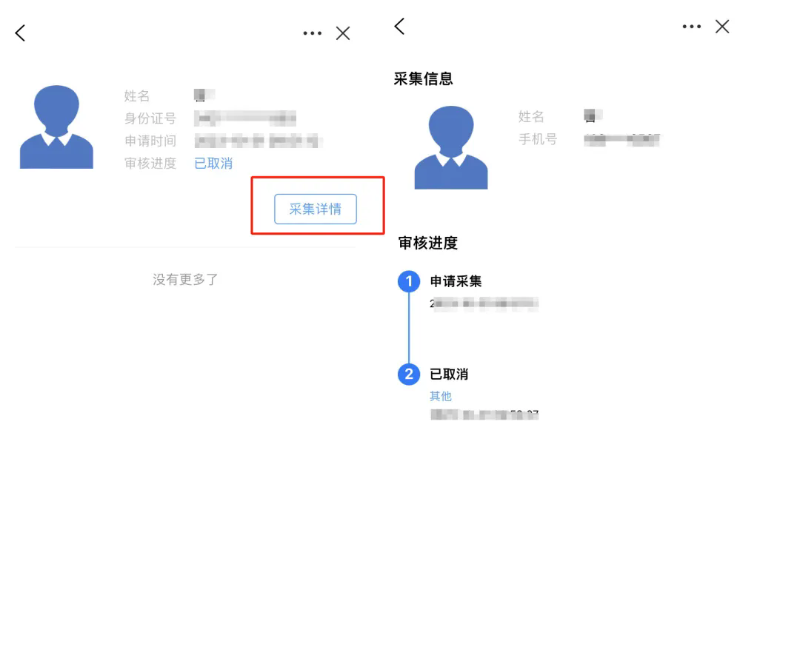 3.照片提交审核后,可通过查看采集详情,查看审核进度。