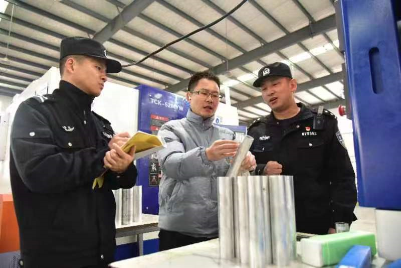 当涂县公安局民警走进辖区重点企业,了解安全生产情况,排查安全隐患,开展安全宣传。卫学超摄