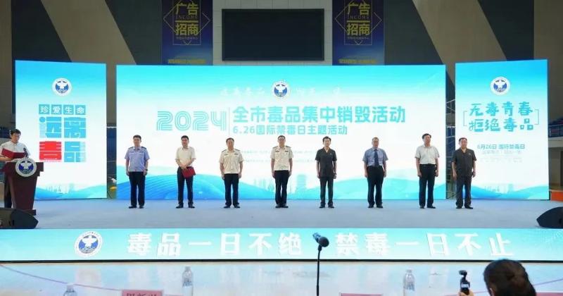 6月25日,山东省临沂市禁毒委员会在临沭县举办全市毒品集中销毁活动。