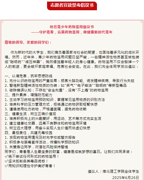 共开展禁毒宣传262场次,对青少年专题教育198场次,通过新闻媒体矩阵、微信公众号等发布禁毒宣传稿件312件。组织178000名适龄学生参加禁毒知识竞赛,与淮师大、淮理工、工业学校等高等院校联合开展禁毒舞台剧比赛,荣获全省三等奖。举办全市中小学毒品预防教育课件大赛,推荐的3部作品分别荣获全省中小学毒品预防教育课件决赛小学组三等奖、初中组二等奖、高中(中职)组二等奖。组织开展2025年全省大学生禁毒短视频、海报大赛,分别荣获全省二等奖。与320多家快递物流、娱乐场所、药房药业公司和交通运输经营单位签订禁毒责任义务书,在全市范围形成积极参加禁毒宣传的浓厚氛围。