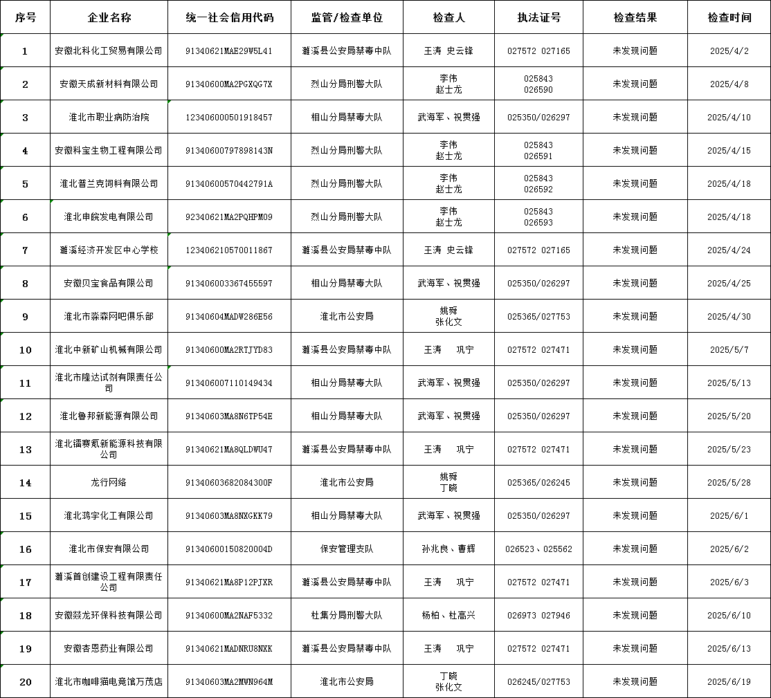 淮北市公安局2025年第二季度“双随机、一公开”监管工作公示