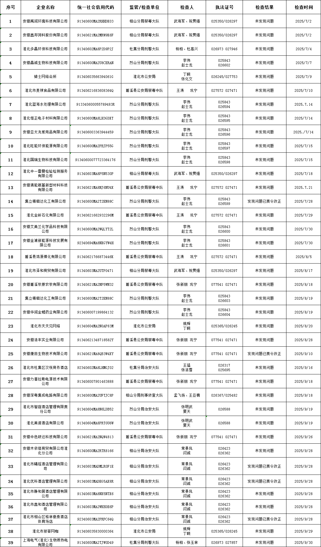淮北市公安局2025年第三季度“双随机、一公开”监管工作公示
