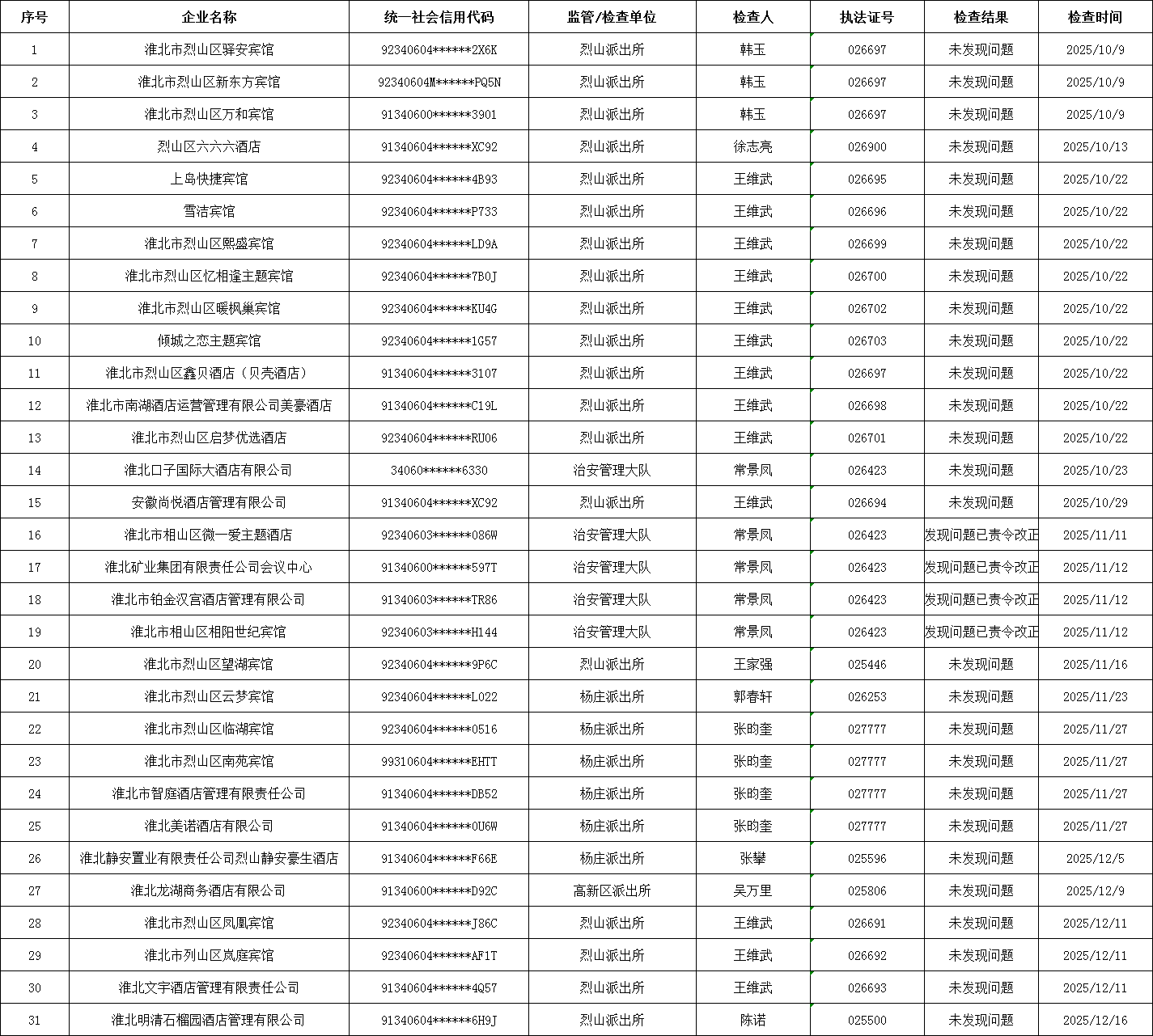 淮北市公安局2025年第四季度“双随机、一公开”监管工作公示