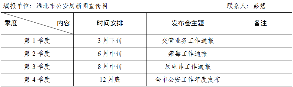 淮北市公安局2026年度新闻发布会计划表 |